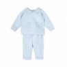 Conjunto de jersey y pantalón. Composición: 100% algodón. Lavar a máquina máx. 30ºC. Planchado suave máx. 110ºC. No usar secadora. No usar lejía.